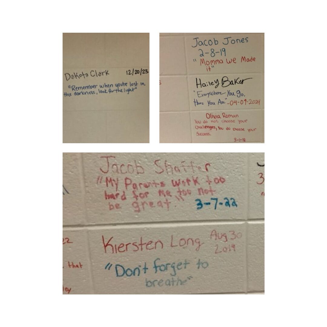 The Simon Youth Academy at Richmond High School has another unique way in which they celebrate their students’ accomplishments. A Wall of Fame has been established in a hallway in the Academy. Each graduate gets the honor of signing a section of the wall with paint pens when they finish their graduation requirements. A student’s signature on the wall has become a rite of passage for the academy.