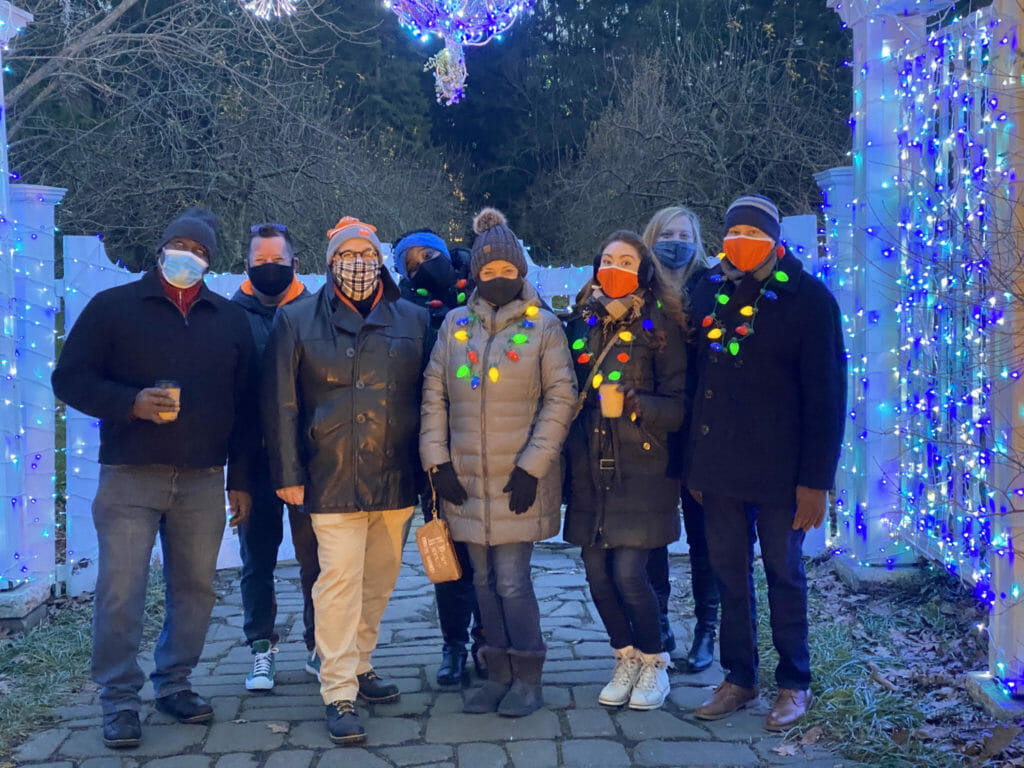 That did not happen. In fact, there have been only two instances in which the majority of us were together in one place: In May, we hosted a goodbye drive-by parade for a staff member moving out of state, and earlier in December we gathered outdoors for very frigid holiday celebration at Newfield’s Winterlights (pictured here) earlier in December.